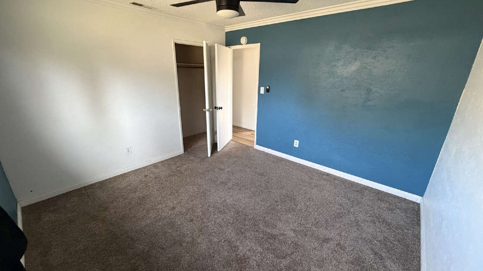 The bedrooms are spacious and filled with natural light, each offering comfortable carpeting, ceiling fans, and ample closet space. Bathrooms include updated fixtures, modern lighting, and tile shower/tub surrounds.